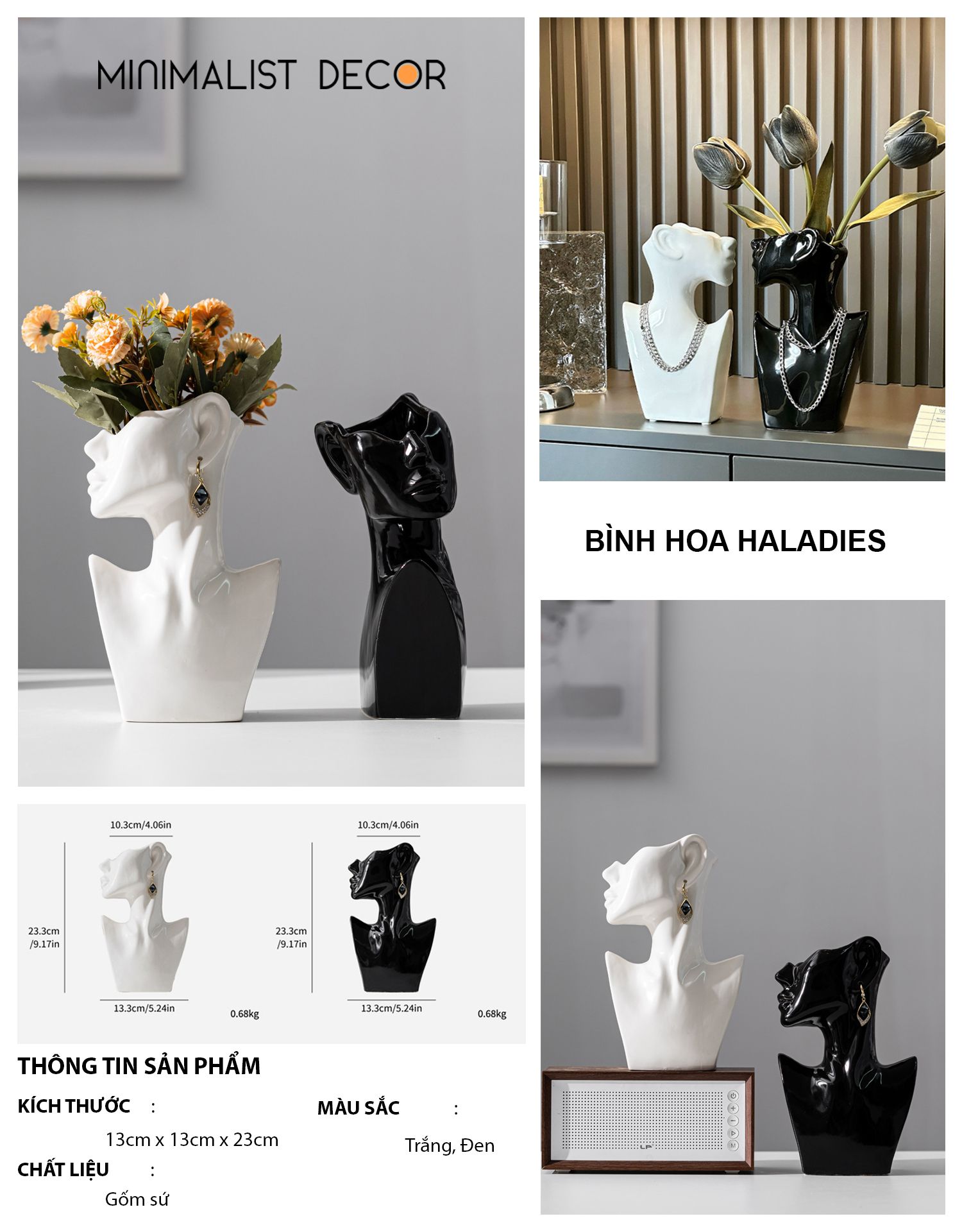 BÌNH HOA HALADIES ĐEN