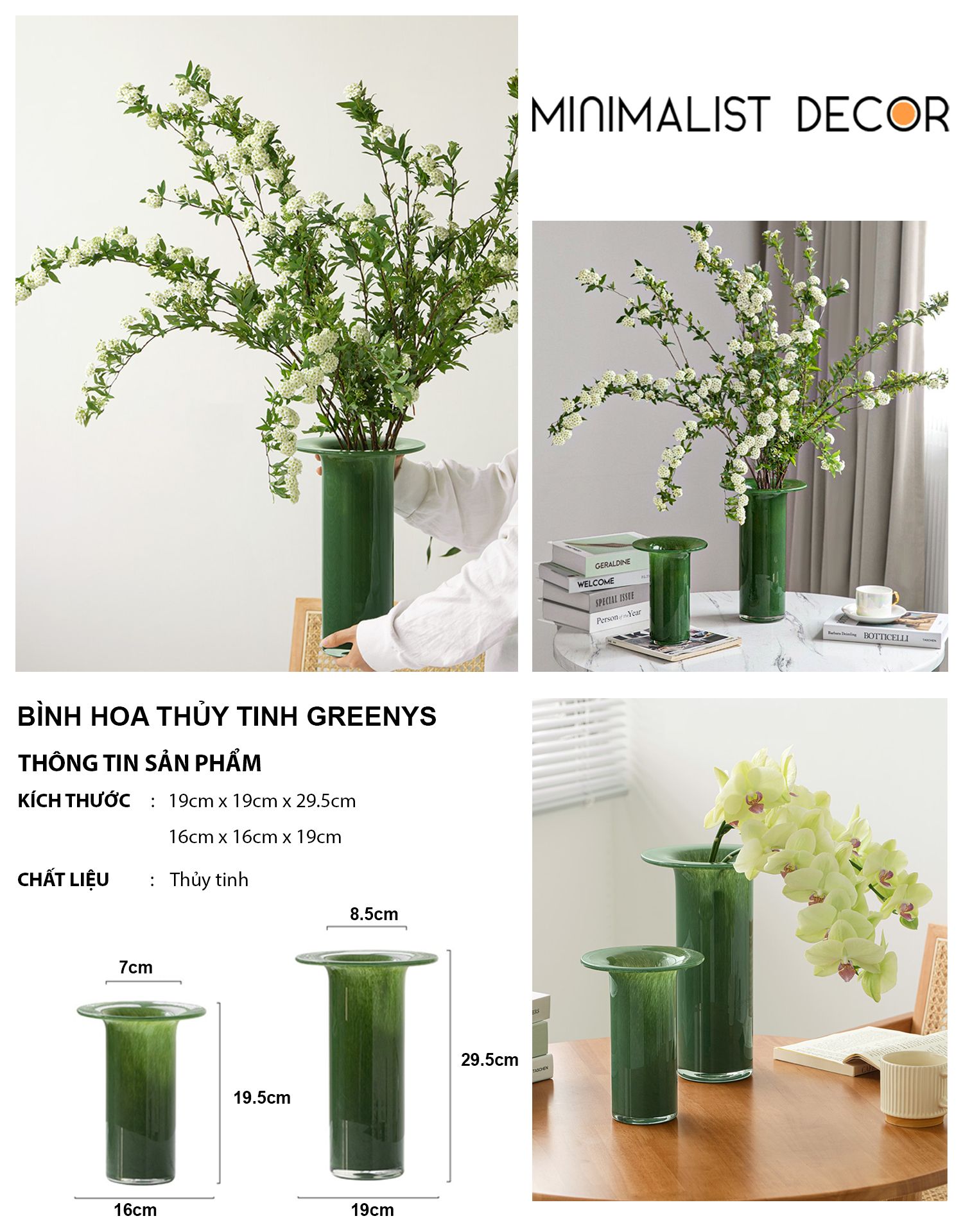 BÌNH HOA THỦY TINH GREENYS LỚN